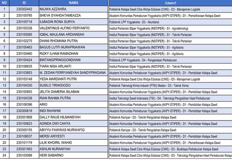 Berikut Daftar Peserta Beasiswa SDM PKS Kabupaten Bengkulu Utara Tahun 2023.